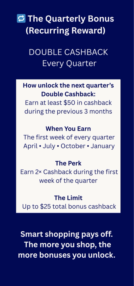 II. Quarterly Double Cashback Bonus (Ongoing Loyalty Reward)